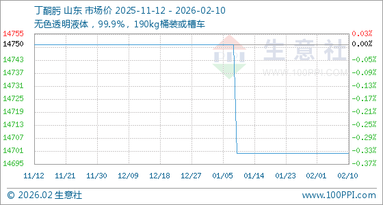 2月10日,生意社丁酮肟基准价为14700.00元/吨,与本月初持平。