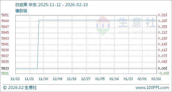 2月10日,生意社白炭黑基准价为5850.00元/吨,与本月初持平。