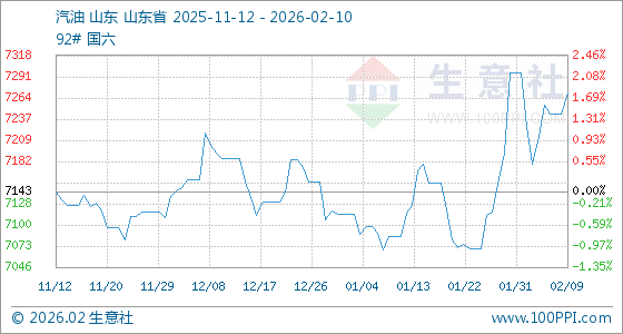 2月10日,生意社汽油基准价为7271.00元/吨,与本月初(7296.00元/吨)相比,下降了0.34%。