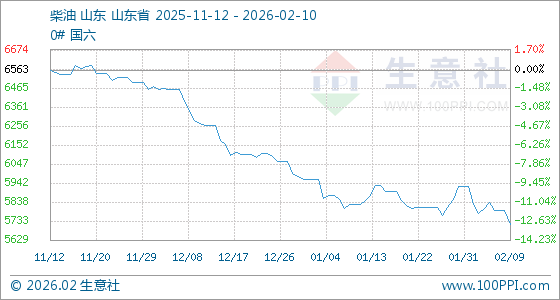 2月10日,生意社柴油基准价为5716.40元/吨,与本月初(5922.40元/吨)相比,下降了3.48%。