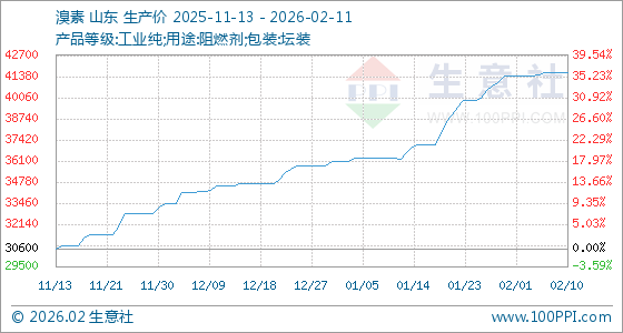 2月11日,生意社溴素基准价为41600.00元/吨,与本月初(41400.00元/吨)相比,上涨了0.48%。