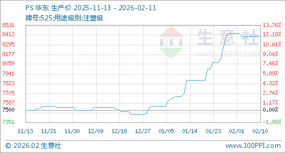 2月11日,生意社PS基准价为8400.00元/吨,与本月初(8433.33元/吨)相比,下降了0.4%。