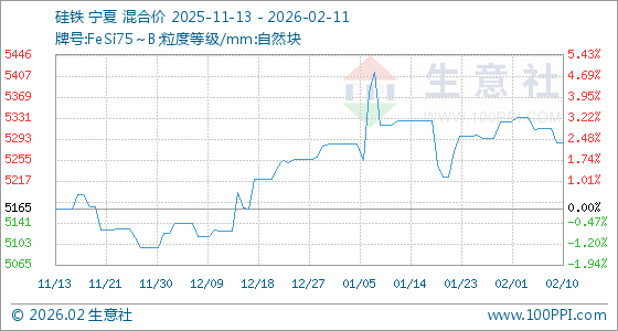 2月11日,生意社硅铁基准价为5287.14元/吨,与本月初(5324.29元/吨)相比,下降了0.7%。