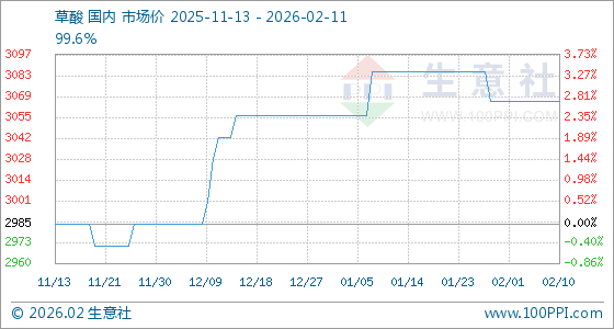 2月11日,生意社草酸基准价为3066.67元/吨,与本月初持平。