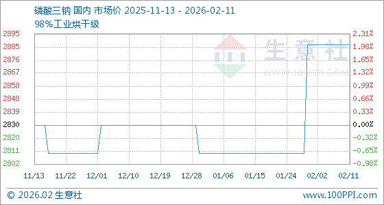 2月11日,生意社磷酸三钠基准价为2887.50元/吨,与本月初持平。