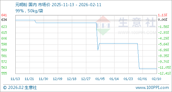 2月11日,生意社元明粉基准价为562.50元/吨,与本月初持平。