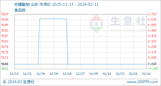 2月11日,生意社柠檬酸钠基准价为5166.67元/吨,与本月初持平。