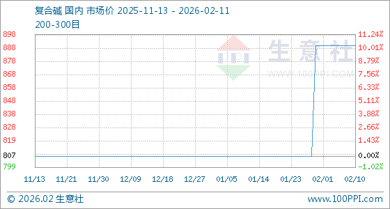 2月11日,生意社复合碱基准价为890.00元/吨,与本月初持平。