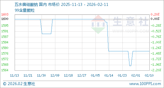2月11日,生意社五水偏硅酸钠基准价为1578.00元/吨,与本月初持平。