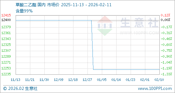 2月11日,生意社草酸二乙酯基准价为12250.00元/吨,与本月初持平。