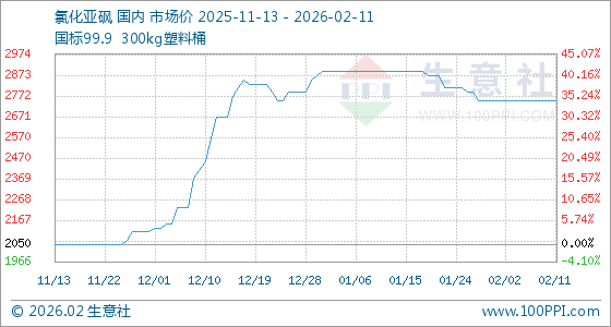 2月11日,生意社氯化亚砜基准价为2750.00元/吨,与本月初持平。