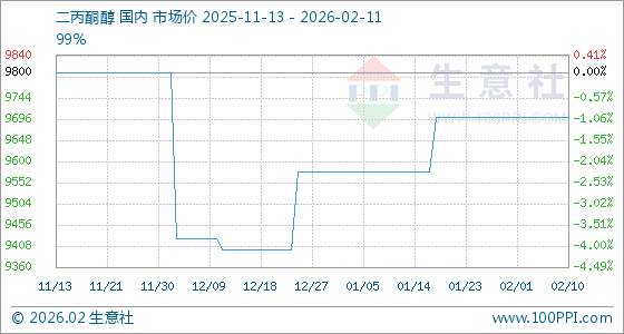 2月11日,生意社二丙酮醇基准价为9700.00元/吨,与本月初持平。