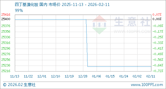 2月11日,生意社四丁基溴化铵基准价为25233.33元/吨,与本月初持平。