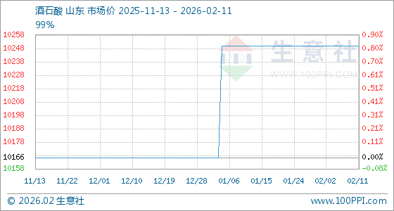 2月11日,生意社酒石酸基准价为10250.00元/吨,与本月初持平。