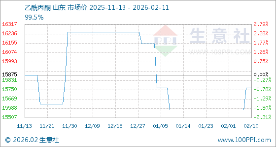 2月11日,生意社乙酰丙酮基准价为15766.67元/吨,与本月初(15575.00元/吨)相比,上涨了1.23%。