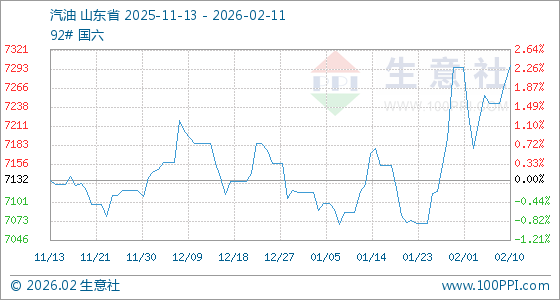 2月11日,生意社汽油基准价为7298.20元/吨,与本月初(7296.00元/吨)相比,上涨了0.03%。