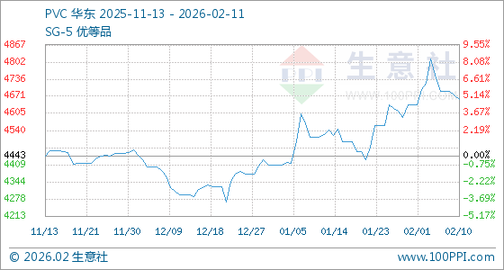 2月11日,生意社PVC基准价为4659.00元/吨,与本月初(4640.00元/吨)相比,上涨了0.41%。