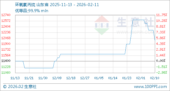 2月11日,生意社环氧氯丙烷基准价为12000.00元/吨,与本月初(12600.00元/吨)相比,下降了4.76%。