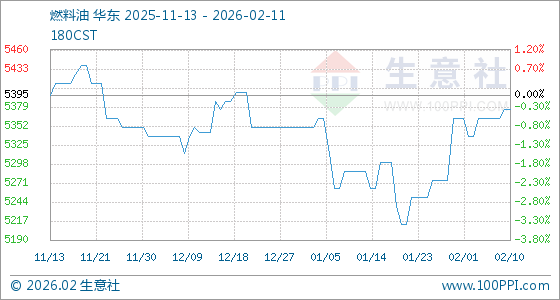 2月11日,生意社燃料油基准价为5375.00元/吨,与本月初(5362.50元/吨)相比,上涨了0.23%。