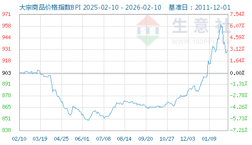 2月10日大宗商品价格指数BPI为930点, 较昨日上升了1点 , 较周期内最高点1343点(2021-10-19)下降了30.75%,较2016年02月03日最低点660点上涨了 40.91%。(注:周期指2011-12-01至今)