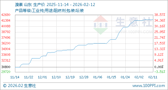 2月12日,生意社溴素基准价为41600.00元/吨,与本月初(41400.00元/吨)相比,上涨了0.48%。