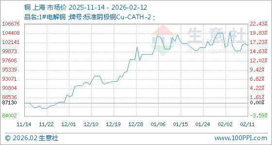 2月12日,生意社铜基准价为101353.33元/吨,与本月初(104496.67元/吨)相比,下降了3.01%。