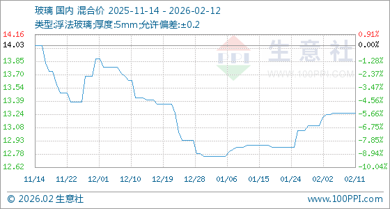 2月12日,生意社玻璃基准价为13.25元/平方米,与本月初(13.10元/平方米)相比,上涨了1.15%。