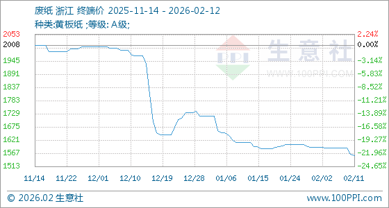 2月12日,生意社废纸基准价为1558.00元/吨,与本月初(1592.00元/吨)相比,下降了2.14%。