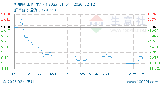 2月12日,生意社鲜香菇基准价为8.99元/公斤,与本月初(9.01元/公斤)相比,下降了0.22%。