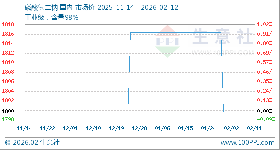 2月12日,生意社磷酸氢二钠基准价为1800.00元/吨,与本月初持平。