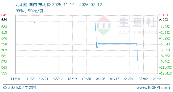 2月12日,生意社元明粉基准价为562.50元/吨,与本月初持平。