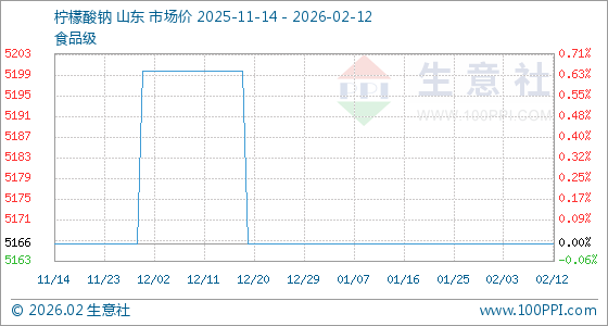 2月12日,生意社柠檬酸钠基准价为5166.67元/吨,与本月初持平。