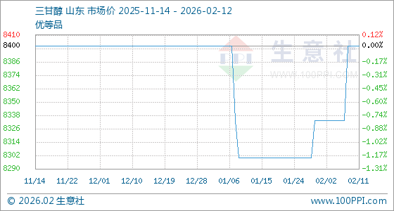 2月12日,生意社三甘醇基准价为8400.00元/吨,与本月初(8333.33元/吨)相比,上涨了0.80%。
