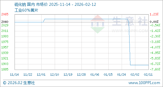 2月12日,生意社硫化钠基准价为1900.00吨,与本月初持平。
