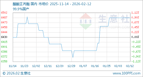 2月12日,生意社醋酸正丙酯基准价为6487.50元/吨,与本月初持平。