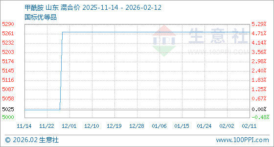 2月12日,生意社甲酰胺基准价为5266.67元/吨,与本月初持平。