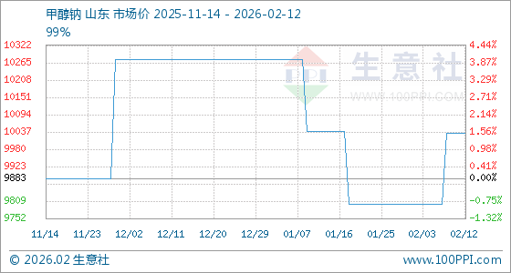 2月12日,生意社甲醇钠基准价为10033.33元/吨,与本月初(9800.00元/吨)相比,上涨了2.38%。