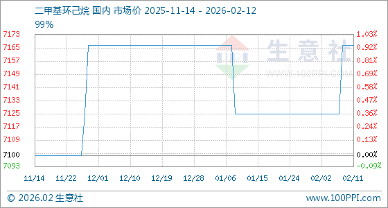 2月12日,生意社二甲基环己烷基准价为7166.67元/吨,与本月初(7125.00元/吨)相比,上涨了0.58%。