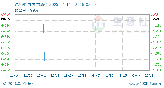 2月12日,生意社对苯醌基准价为64500.00元/吨,与本月初持平。