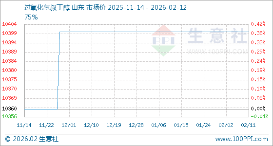 2月12日,生意社过氧化氢叔丁醇基准价为10400.00元/吨,与本月初持平。