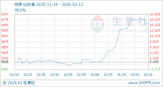 2月12日,生意社纯苯基准价为6110.00元/吨,与本月初(6186.67元/吨)相比,下降了1.24%。