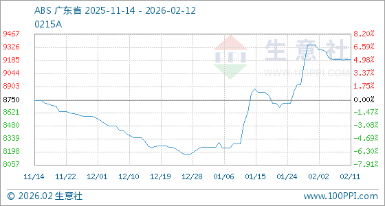 2月12日,生意社ABS基准价为9193.33元/吨,与本月初(9350.00元/吨)相比,下降了1.68%。