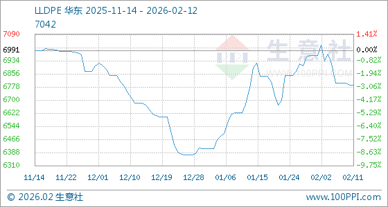 2月12日,生意社LLDPE基准价为6790.00元/吨,与本月初(6966.67元/吨)相比,下降了2.54%。
