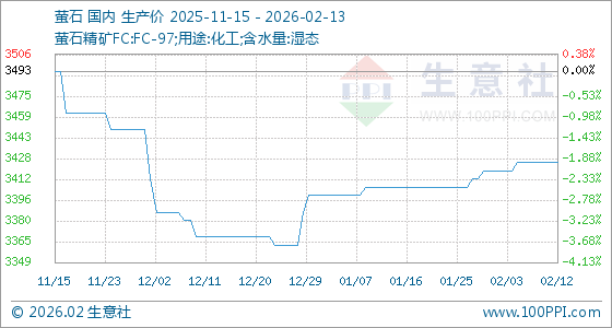 2月13日,生意社萤石基准价为3425.00元/吨,与本月初(3418.75元/吨)相比,上涨了0.18%。