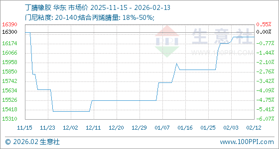 2月13日,生意社丁腈橡胶基准价为16250.00元/吨,与本月初(16175.00元/吨)相比,上涨了0.46%。