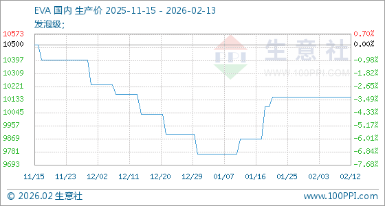 2月13日,生意社EVA基准价为10150.00元/吨,与本月初持平。