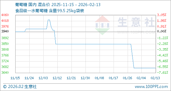 2月13日,生意社葡萄糖基准价为3675.00元/吨,与本月初持平。