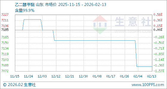 2月13日,生意社乙二醇甲醚基准价为7085.71元/吨,与本月初(7157.14元/吨)相比,下降了1%。