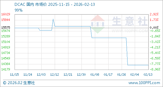 2月13日,生意社DCAC基准价为14333.33元/吨,与本月初持平。