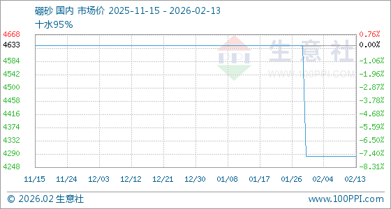 2月13日,生意社硼砂基准价为4283.33元/吨,与本月初持平。